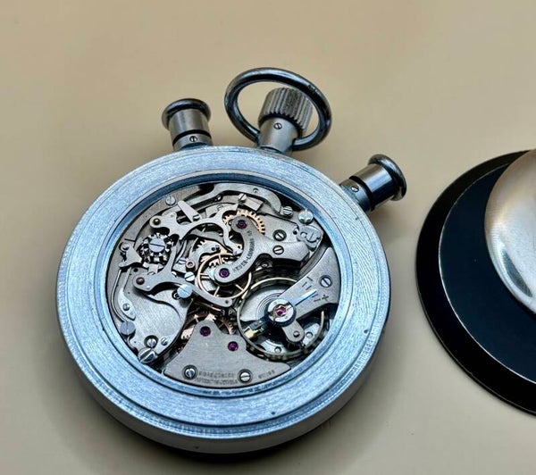 High end industriele Heuer rattrapante-stopwatch – Zwitserse Valjoux 57 (15 juwelen) kaliber.