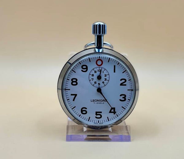 Deze Leonidas-stopwatch is een compact en zeer precies 10-seconden model, uitgerust met het robuuste BF 417-uurwerk (Beaufort Frères). In tegenstelling tot standaard 60-seconden stopwatches maakt dit model één volledige omwenteling in 10 seconden, waardoor het ideaal is voor korte, snelle metingen met hoge resolutie.