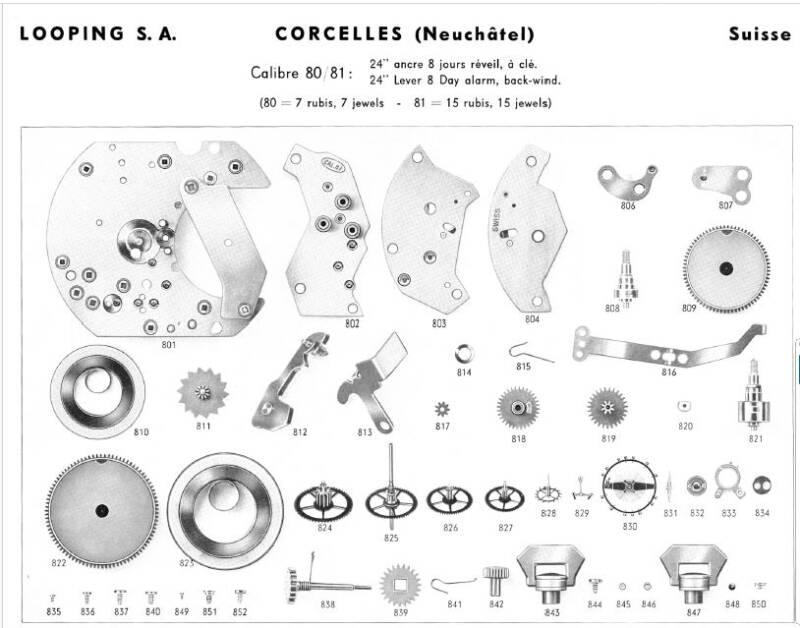 Binnen tikt een degelijk Zwitsers mechanisch 15-steens uurwerk, volledig met de hand opwindbaar. De Looping heeft een 8 dagen gang reserve en hoeft dus maar een keer in de 8 dagen te worden opgedraaid! De achterzijde biedt afzonderlijke stel- en opwindknoppen voor tijd en alarm, duidelijk gemarkeerd.